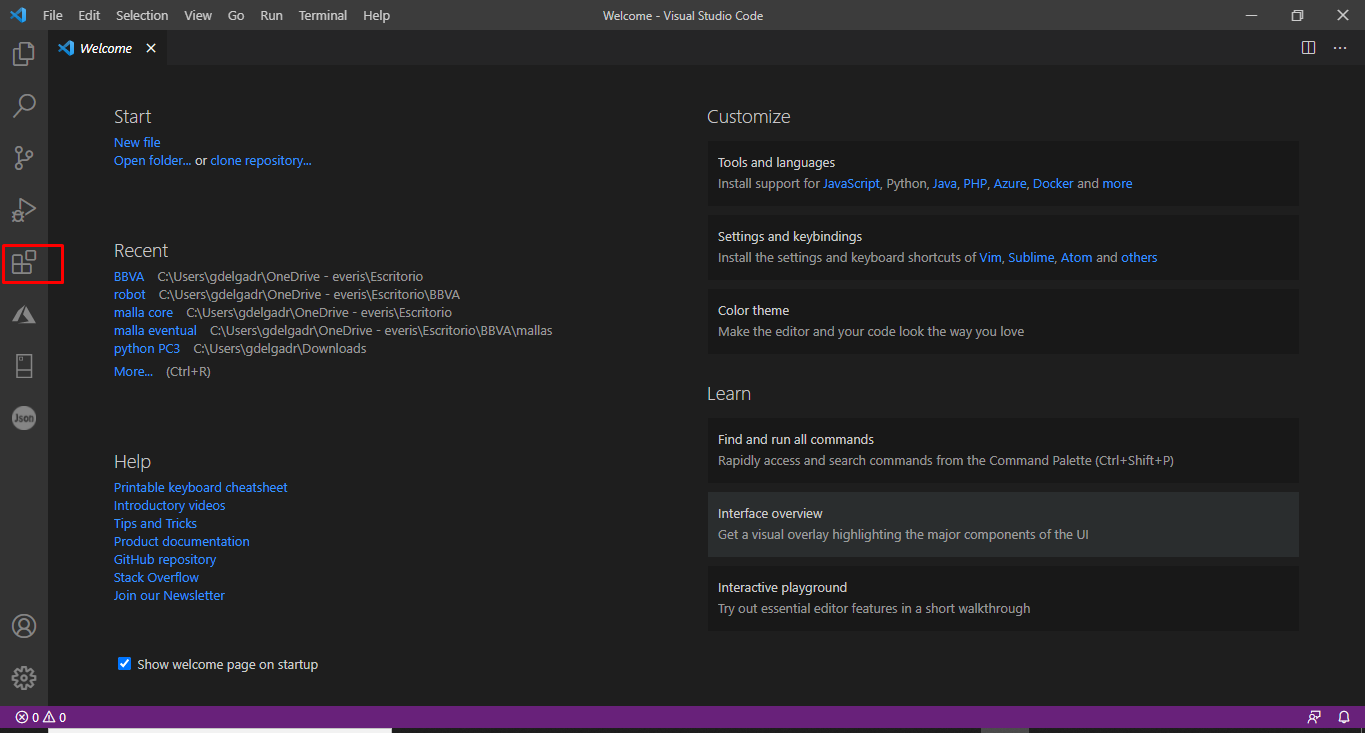 Visual Studio Code es un editor de código fuente desarrollado por Microsoft para Windows, Linux y macOS. Incluye soporte para la depuración, control integrado de Git, resaltado de sintaxis, finalización inteligente de código, fragmentos y refactorización de código.